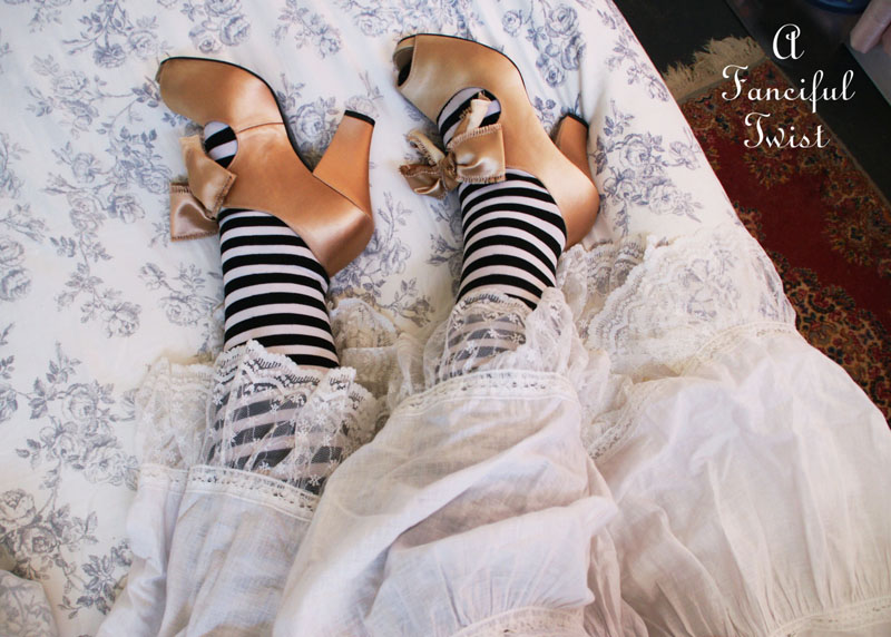 Oh. I love summer rains too even if they are a bit colder and more frequent here. It means that I don’t have to water my plants. I love the combination of the striped stockings and your beautiful shoes!