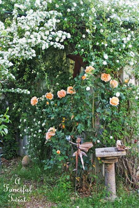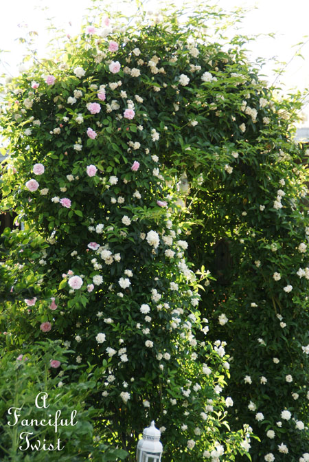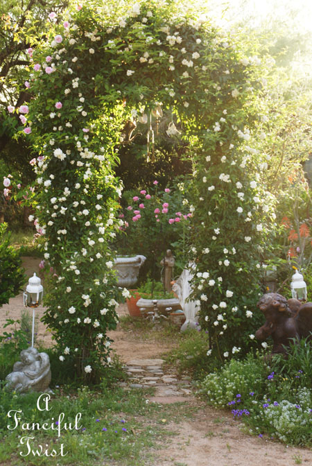 *Le Sigh* – gorgeous. I’m doing my best to be patient for two Don Juan rose bushes to grow up their arbor and over the top. They are so thin and spindly, so dainty in their growth, that I ache for a day when I get the same results that you’ve achieved. I want roses galore and a garden that makes people feel like walking barefoot, reading a book and drinking cold lemonade (or wine,) writing gypsy poetry (or speaking it) while hidden among lush vines that smell of jasmine and other flora. I also hope to be reflective, quiet, still, and watch birds and butterflies dart through the greenery, while singing their private songs. All of your home is a dream palace and I feel so honored to get a glimpse into your sacred realm.
