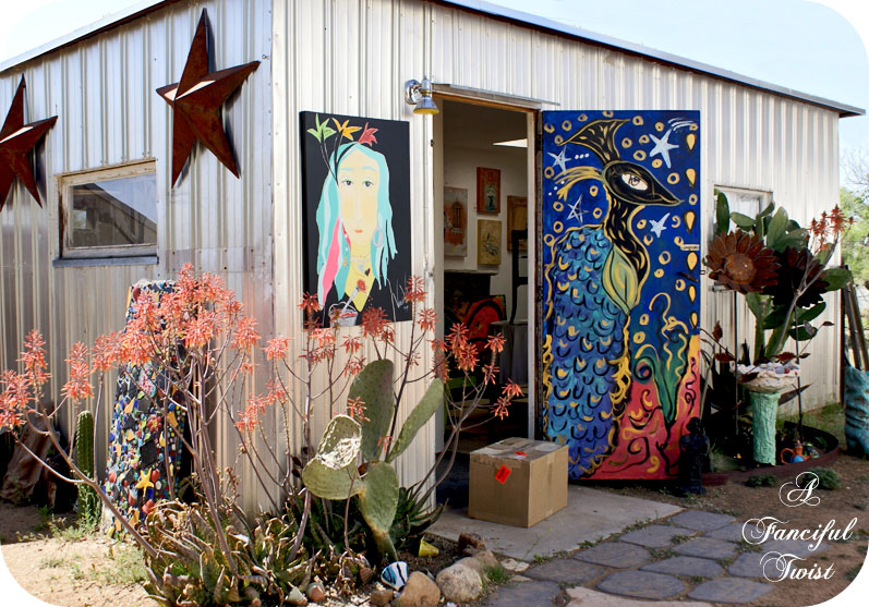 Everything around here was lined with metal by the owners who lived here for 30+ years. If it was standing, it got covered in metal siding. Mister Lovee bought the property ages and ages ago, because of the amazing views and the land, with fruit trees etc. We make the best of all the metal, thank goodness, my room is not metal… But it can be cute too. I mean, I love my little metal barrio style gallery… And, with the woodpeckers around here, maybe metal is a good thing?