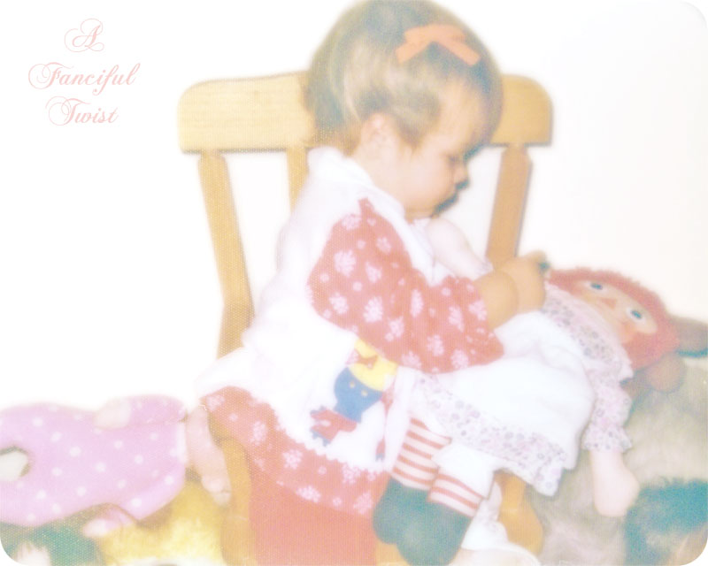 Oh and how cute that lil’ picture is with you and your raggedy ann doll 🙂 Oh how I wish I kept my old dolls from way back when! Well, I must get back at it. Thanks for bringing some whimsy to my day 🙂