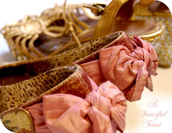 Well, I best be off to check on my shoes that I did surgery on yesterday. I am so proud of myself, I hope my work holds. I really should have done this ages ago to the gold and silver woven ones…