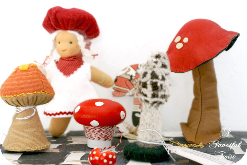 Oh, and I finally got to play with my super cute mushroom loves from Miss Sonya's mushroom swap. It was a ton of work, and she did a lovely job, thank you Miss Sonya!! (she also has a brand new space, wax and wool, yipppeee!)