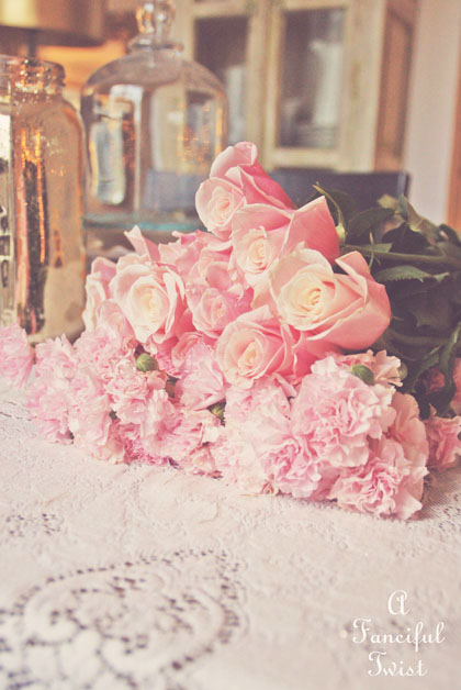 There is always a fresh bouquet in my house, either from the garden or from the market. Right now there is creamy white roses. They just do my heart so much good. Loving your flowers, now I need pink the next time I buy some flowers.