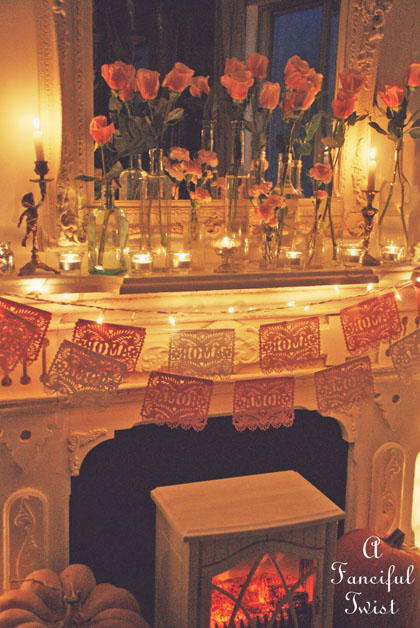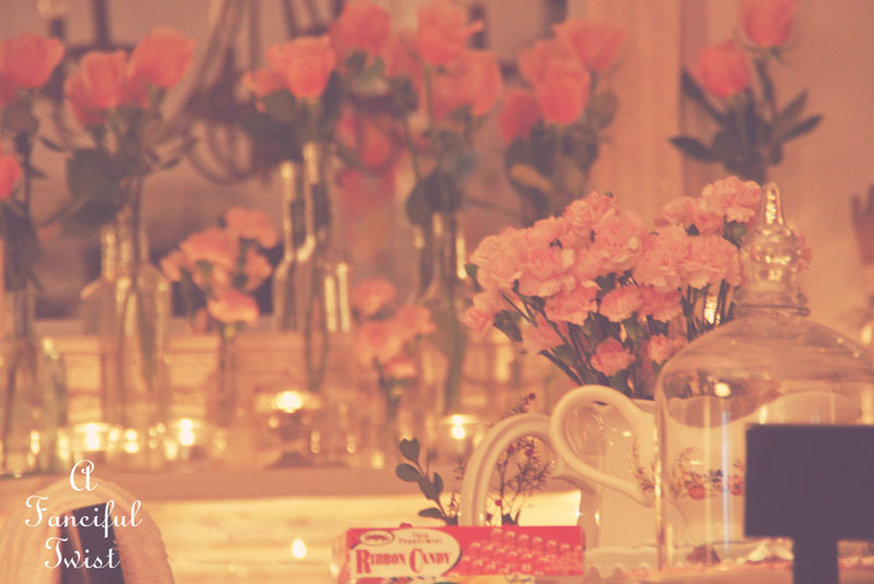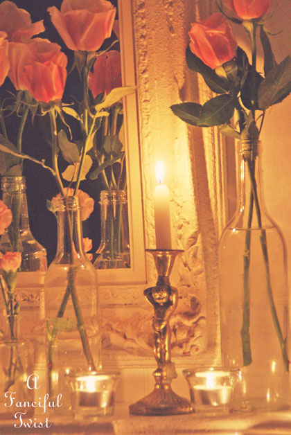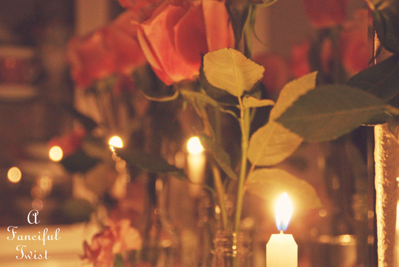 I love candles and light them all the time, no matter what time of the year. With flowers though, I’d rather grow them than have them in the house; and I usually prefer a single, “perfect” rose, instead of a dozen. However if I’m at a friend’s house and they have them, it doesn’t bother me in the slightest and I find it beautiful; just as your setting is absolutely gorgeous. Such a lush, romantic glow among all of those flowers…straight out of a movie setting. I do appreciate that.
