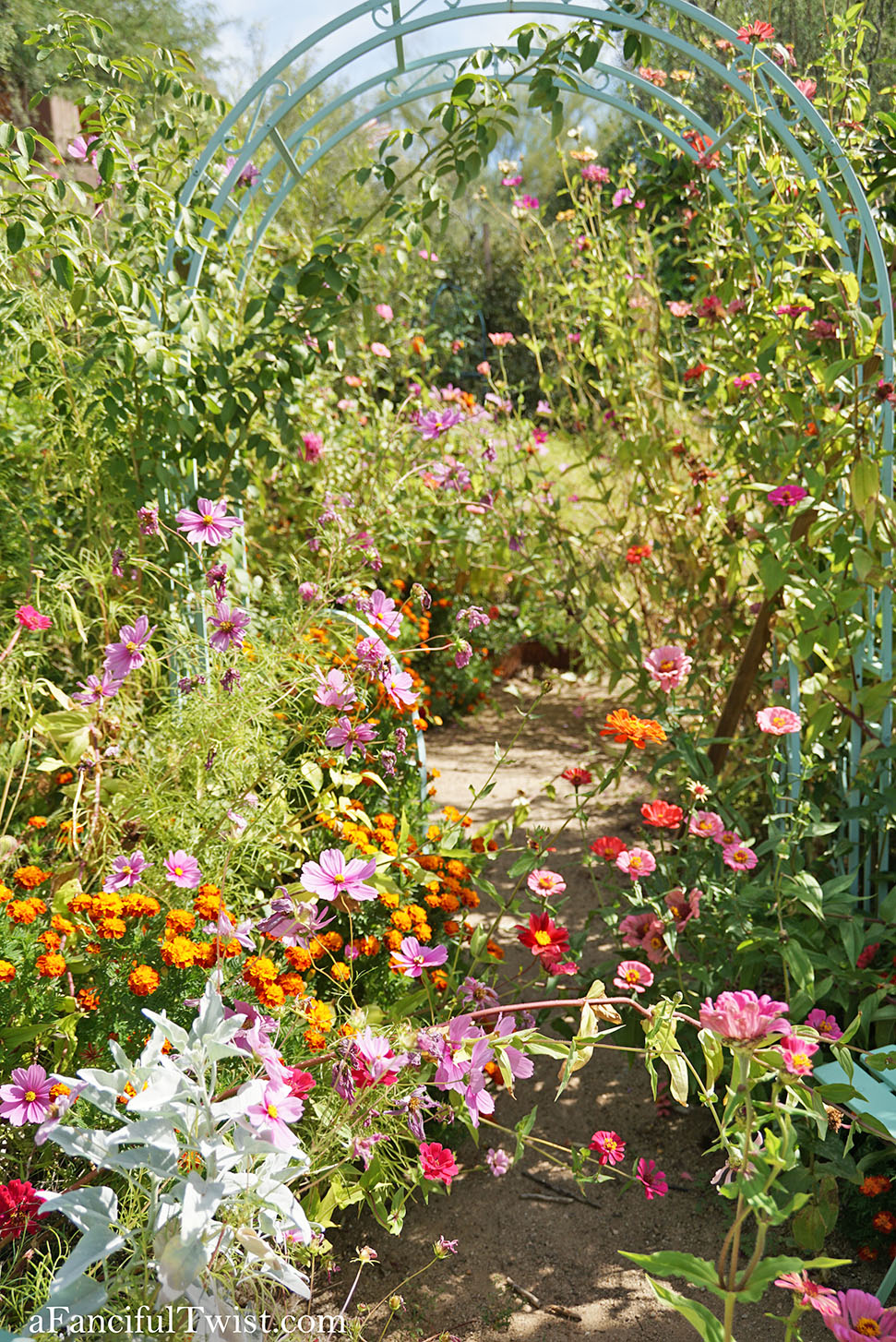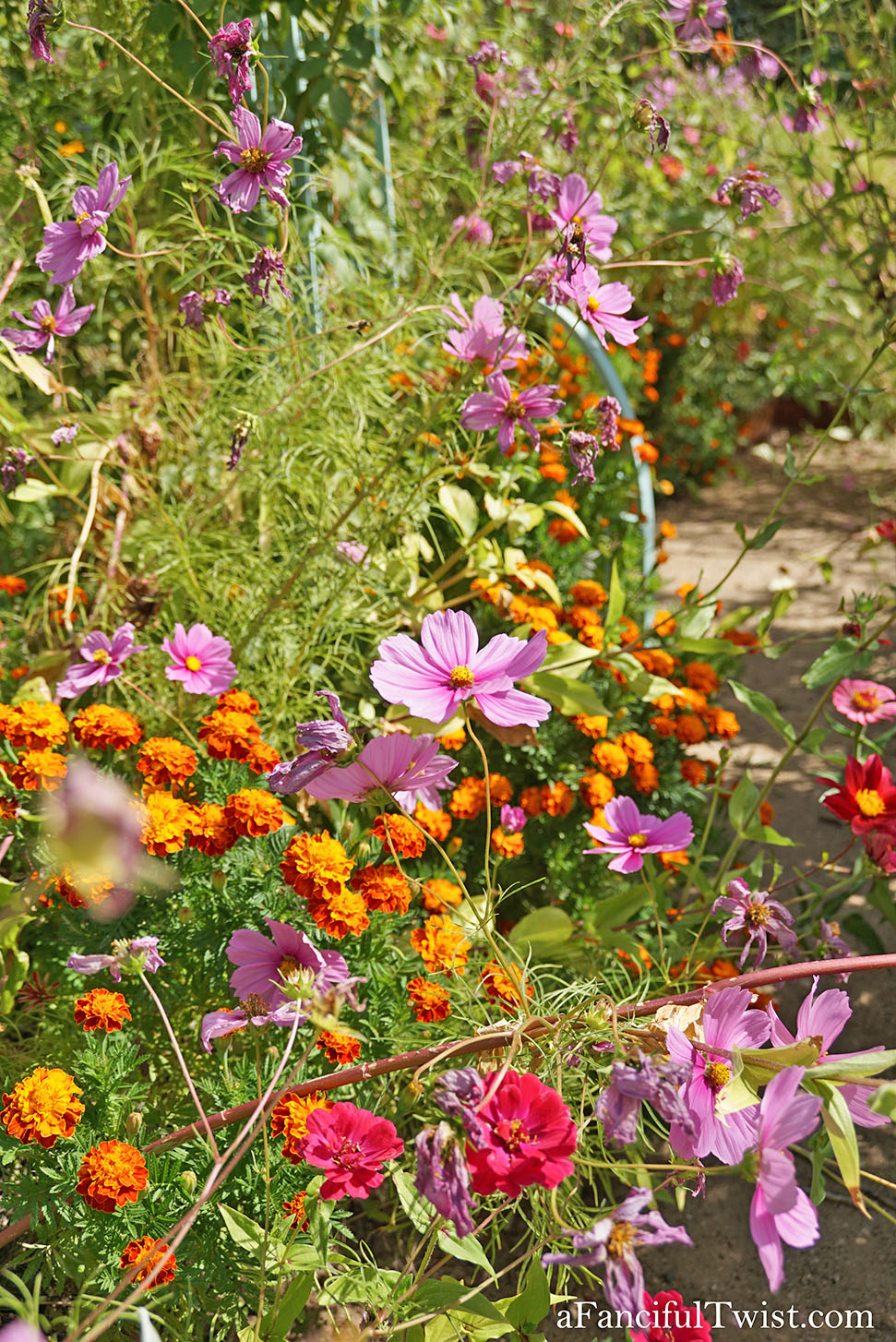 And the paths burst with marigolds intertwined with cosmos, much like the last fireworks.