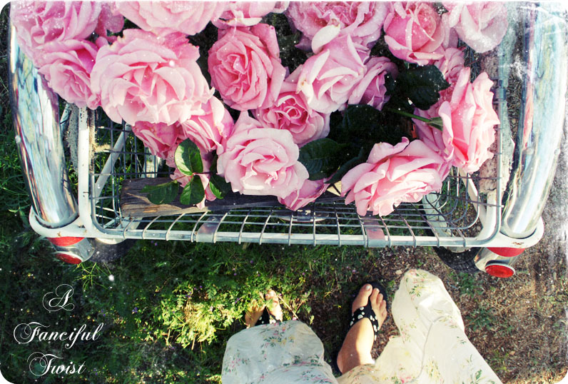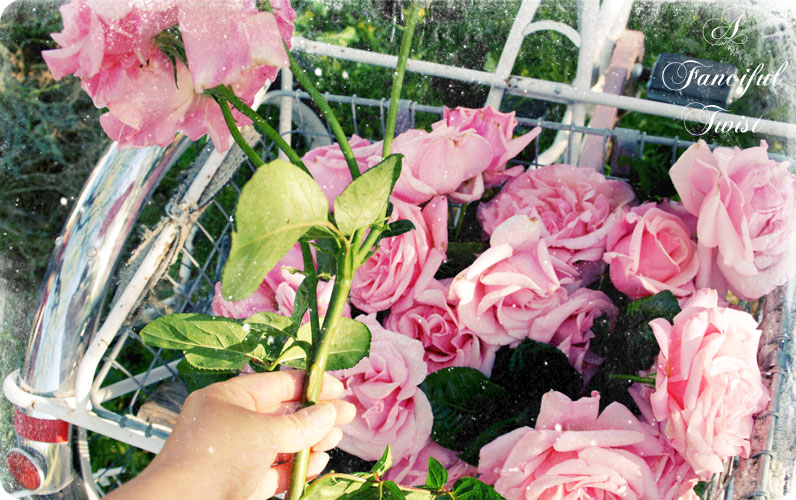That first photo of the trike basket full of roses is stunning! Such big beautiful blooms.