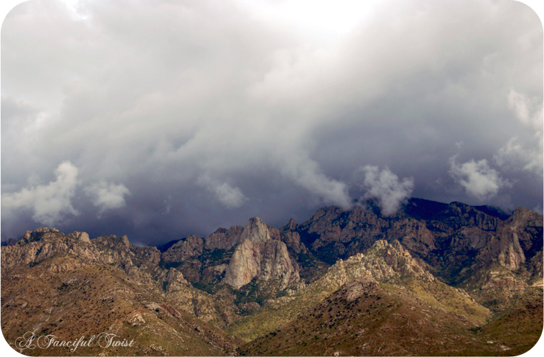 In other Arizona news… Catalina has had so much rain, it is incredible. It was cool here all day today. Driving back to the studio from town, the sky was unreal again yesterday…