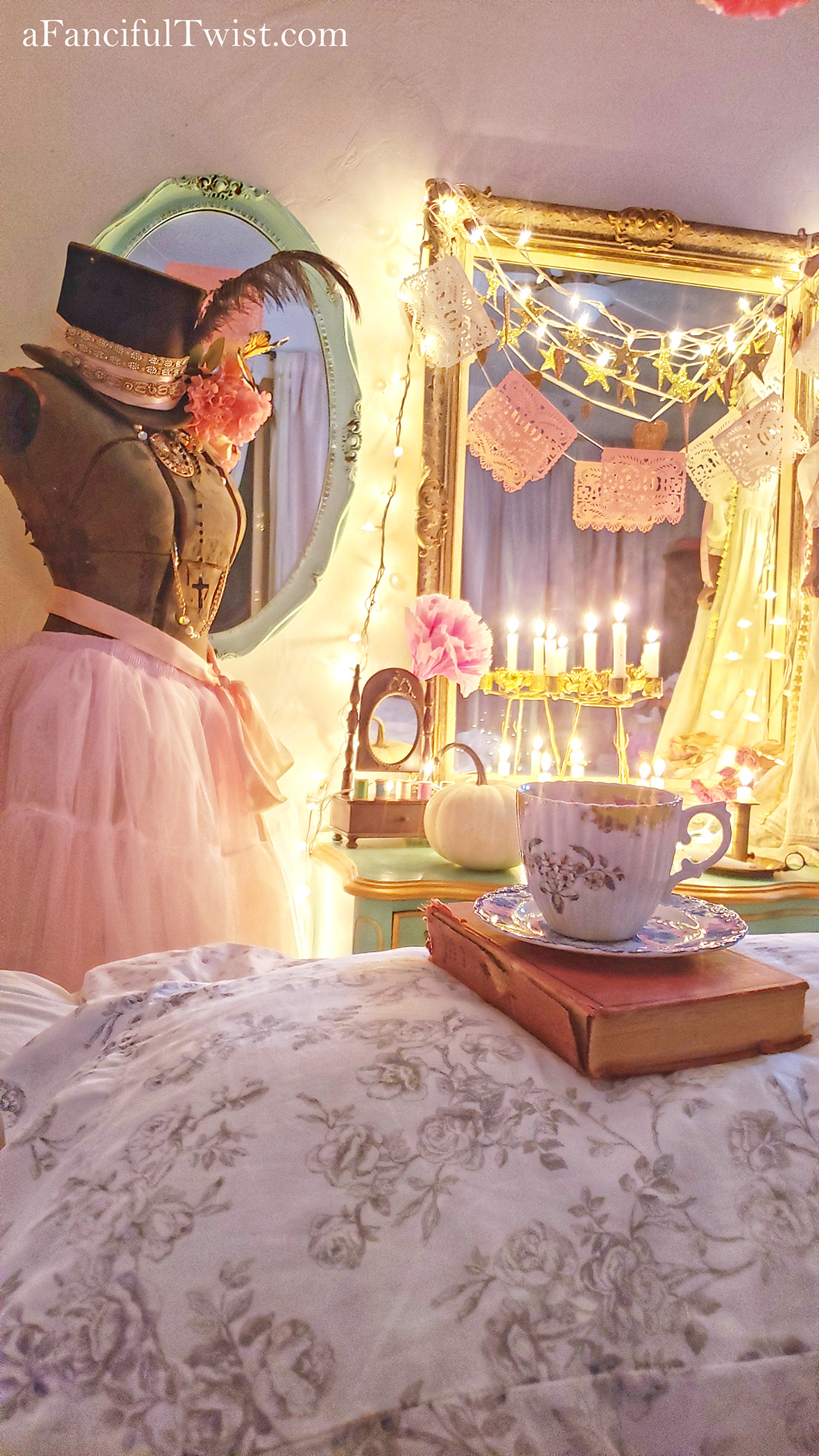 Dear me, what have I been up to, let’s see…tending pumpkins, rubbing my puppy’s tummy, trying to make a pretty thingy for my autumn mantle and sewing sewing sewing. And of course peeking into little Mr. Bunny’s dreamy château. Wherever did he get such excellent taste. 💖💖💖 I hope your day is turning out to be ever so lovely Dear Friendling. 💖💖💖