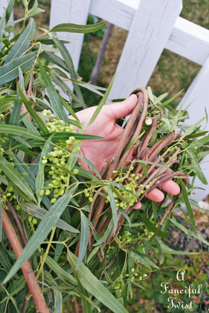 Once the leaves dry and fall off, you will have a lovely twisty wood wreath.