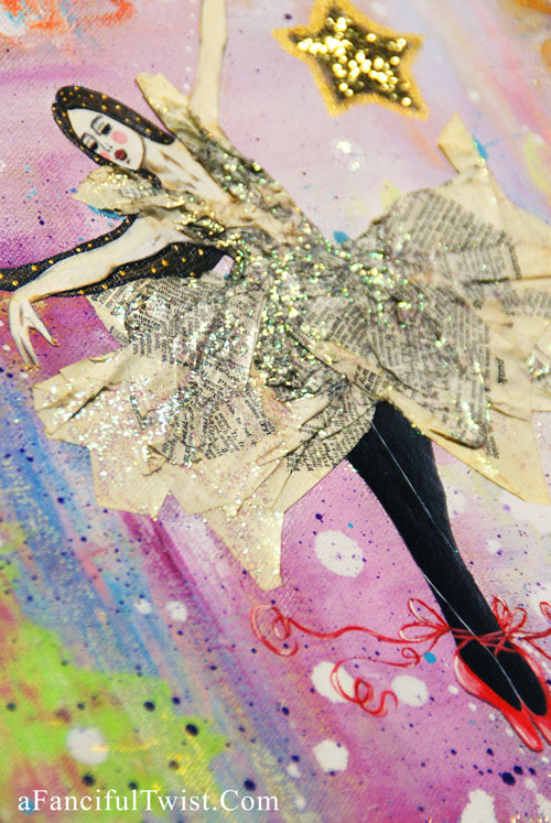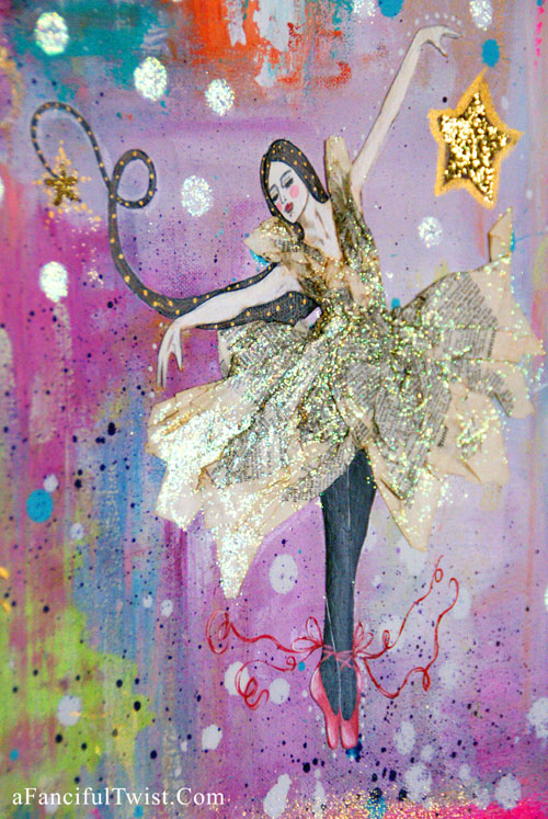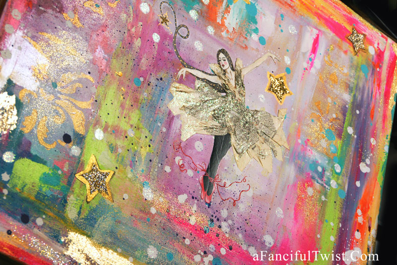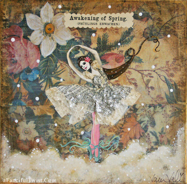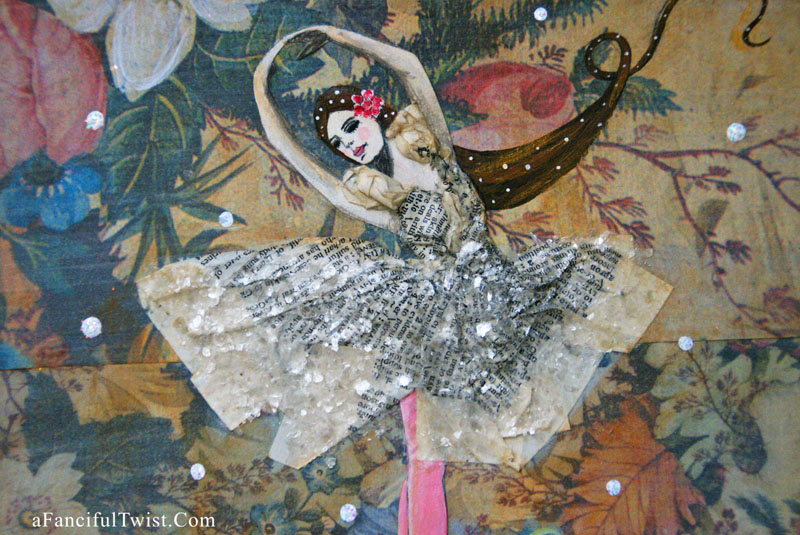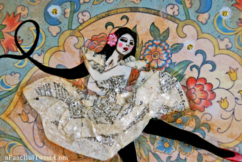 Such gloriously, magical art work. These art collages must visit you in your dreams before you put them onto canvas…as they are the stuff dreams are made of. A fairy must have touched your muse when you began to create your paper doll girls, as they are so ethereal and fairytale-like, and beyond breathtakingly beautiful. I love all of the amazing brilliant paints you used, and the embellishments you added layer by layer.