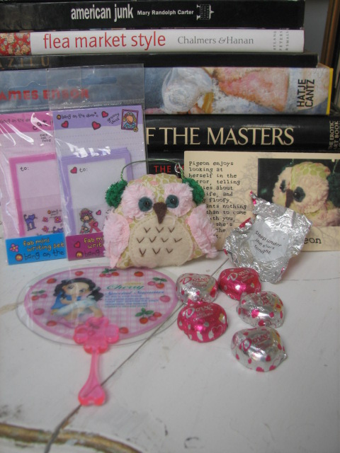 Oh my goodness…Are there treats??? What is that I see??? "Pigeon, is that you???" Let's dump it out and see??? It is it is, it is my treat from the most talented and adorable Wee Foxling?? Yes it is, A Small Fox In a Big World undoubtedly. May I add caring and kind-hearted to the mix of this Foxling Girl? Of course I may. I had to Leave Henry behind, and I am so so sorry Henry. But Miss Pigeon, the teeny pink fluffy owl, has a new home!!! Is she a Pigmy Owl? You know those are endangered in Az. I have to submit info. about that as disclosure to my clients in the Real Estate World!! Can you believe it?