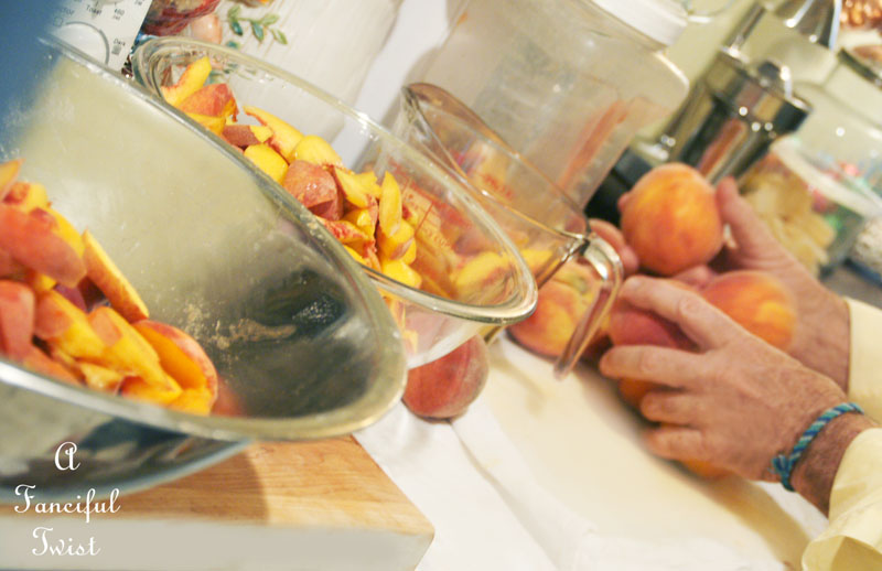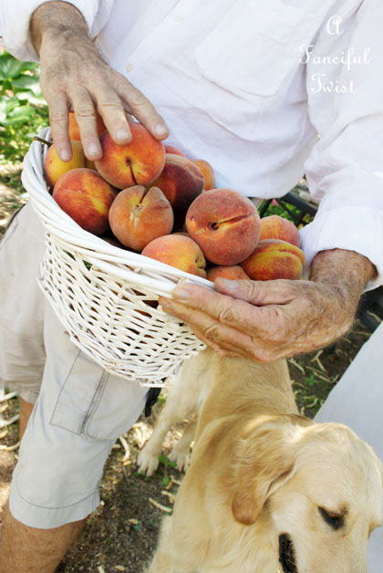 Mister Lovee kept bringing in basket, after basket, after basket, after basket of peaches from our tree.