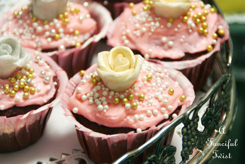 I also made some red velvet cupcakes, with frosting roses that I dusted with gold and silver edible petal dust.