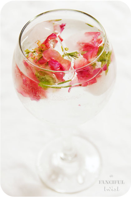 I love your flower ice cubes! I’ve been doing mine with blueberries and lime peel, but herbs and roses would be lovely… hmm… 🙂 thanks for the thought!