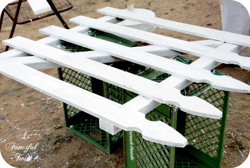 I saw 3 raw wood gates, and thought they would look lovely on one side of the porch. Ha, lucky for me and my bright ideas. I spent 5 hours, coating these with oodles of coats of paint. Why did I ever think I wouldn't be the one with that chore? Silly girl… But they look darn happy up on that porch, I tell ya…