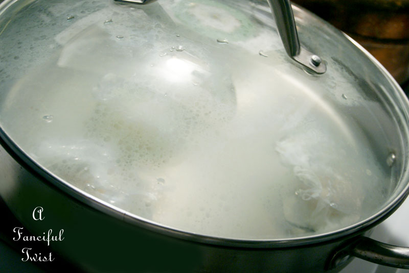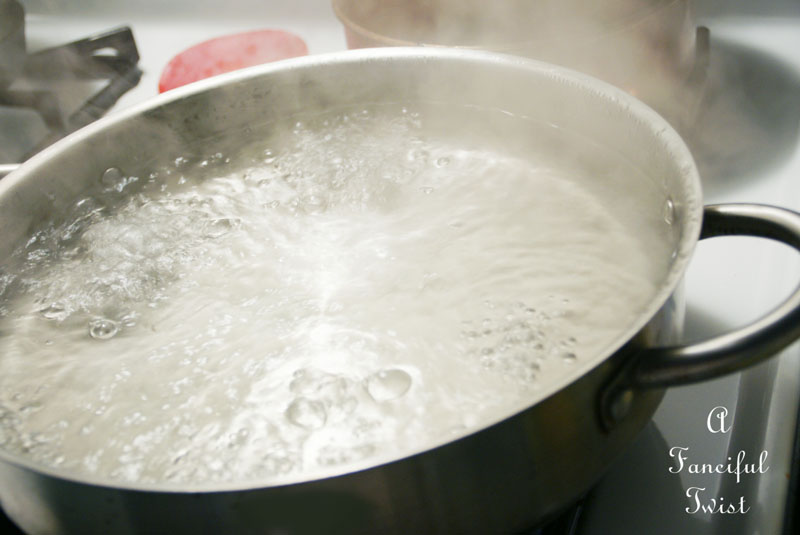 After your water with vinegar comes to a roaring boil, turn it down to a simmer.