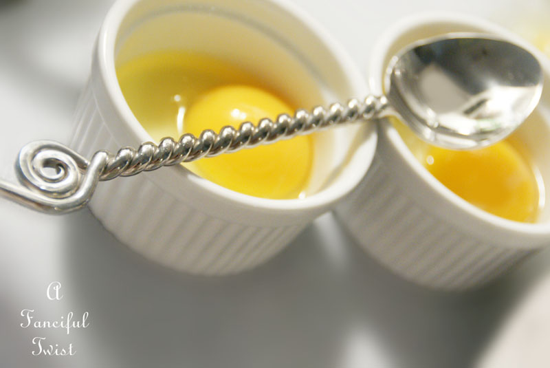 I make 4 eggs at a time, so pour them into a little holder, and set them aside.