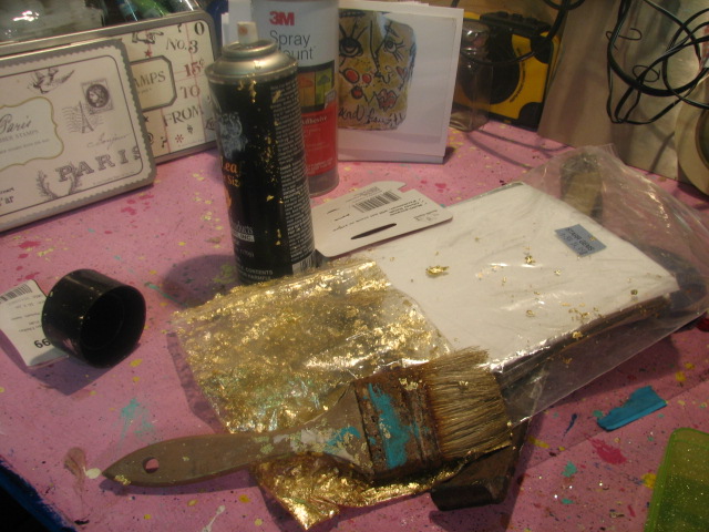 ps: How in the world do you get gold leaf adhesive spray and gold leaf flakes out and off of EVERYTHING????
