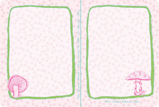 Oooh! Lovely postcards 🙂 Could Miss Fungi, in fact, be you? 🙂 I love the backgrounds you made for Reverie and A Peculiar Day, they go with the paintings so well!