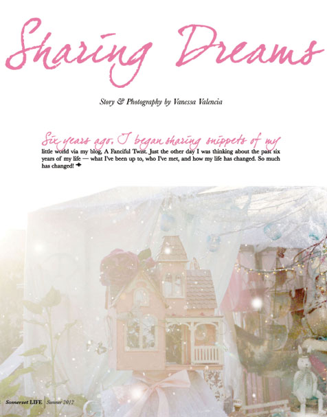 Oh happy day!!! That is EXCELLENT news, Vanessa. It looks like such a lovely magazine – I can’t wait to read the article. I know it will be most amazing. I do so love the blogging community – for through it I have met the most wonderful people (like yourself) who I might not have ever been able to get to know. Although miles and sometimes countries separate us, we can still form strong bonds. And that is a great thing! 🙂 I love sharing your whimsical world with you. 🙂