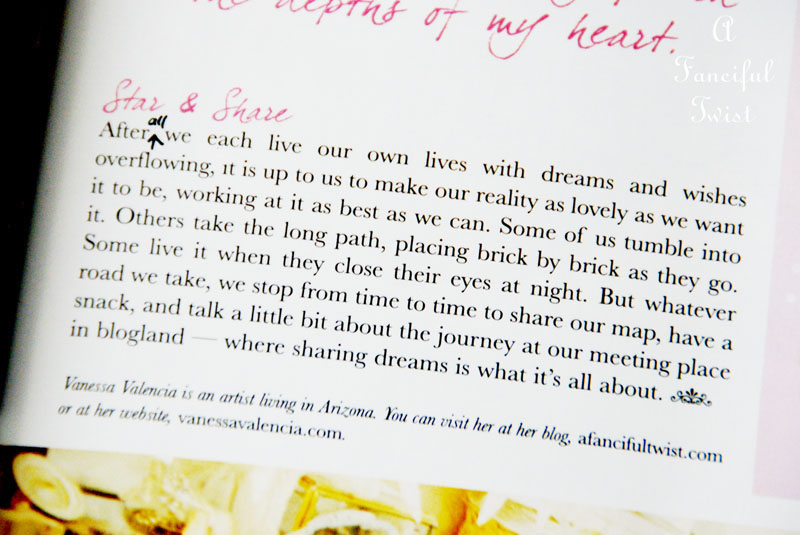 hi vanessa….i don’t always leave a comment…but i always come here and fall into your magical world…..and leave here with a smile on my face and glitter in my hair!! i will go get my copy of the magazine tomorrow!!!