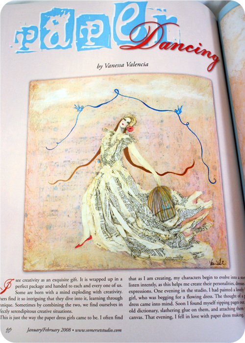 In late July of 2007, the paper dress girls were asked if they would like to be featured in an issue of Somerset Studio. I adore Somerset Studio magazine. I remember while attending the University of Arizona (which I later graduated from), other artsy friends and I would pour over the pages between classes, ever so excited & inspired.