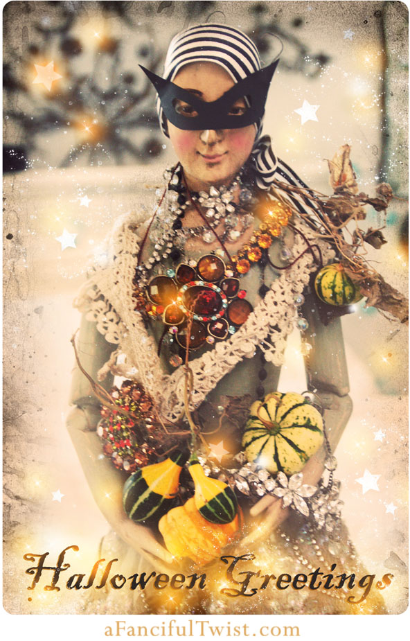 And, what I find to be a very lovely Halloween greeting, the spooky little pumpkin below.