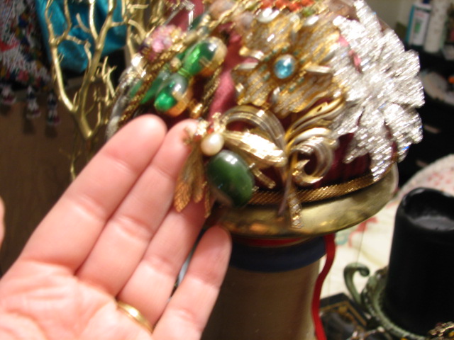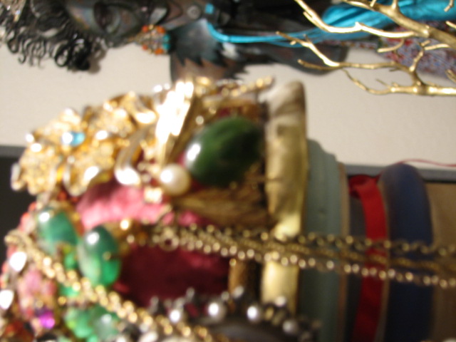 I must admit, I do have an obscene amount of jewels, which includes, but is not limited to, pins and brooches. And, I should be ashamed, but being of fanciful mind and psychotic soul, I am quite delighted with the collection I have amassed….I mean, I have been collecting since I was 4 1/2. I am proud! Here are a few of the pins, sorry for the blurry-ness….