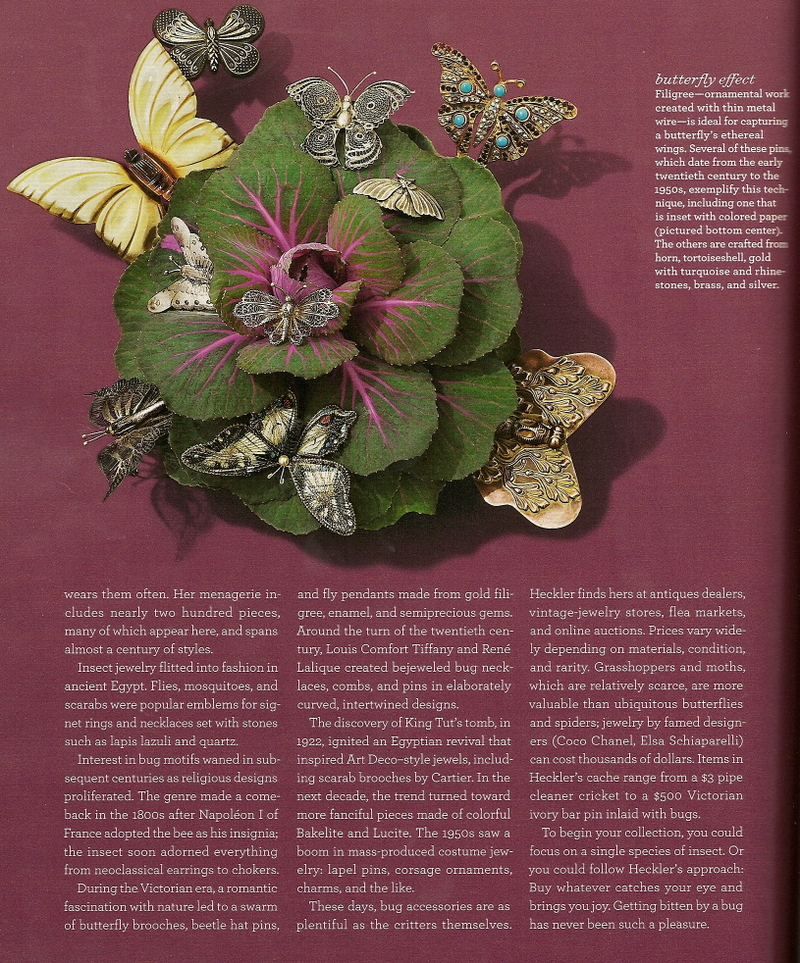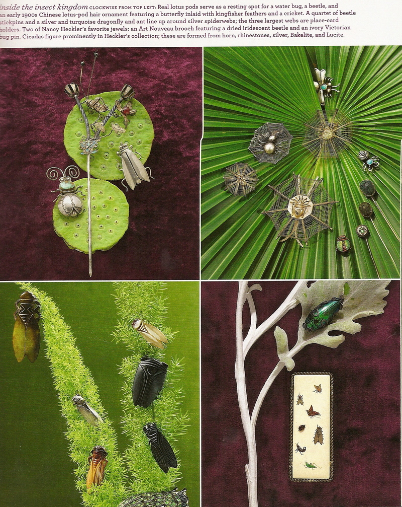 And, yes, as you expected, it does come with a personal story. My memory became alive with these photos of Nancy Heckler's collection of enchanted bug jewels (following two pictures are from said article).