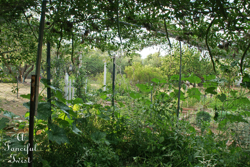 Fairy tale pumpkin vines are looking pretty lovely I'd say.