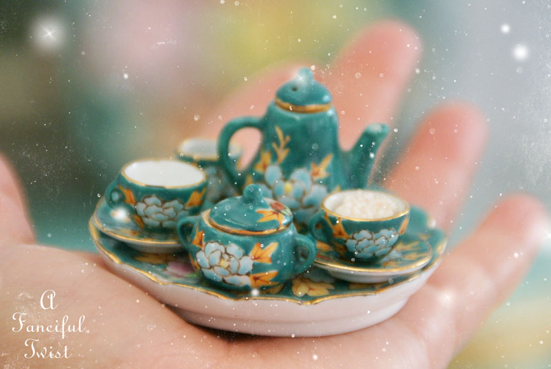 I love your miniature tea set. I have some miniature tea pretties but none so small. I have my grandma’s tea set from when she was a little girl and I have 2 small sets from when I was a little girl. I hang my sets by twine on the family Christmas tree each year. Ohhhh….here I am rambling again.