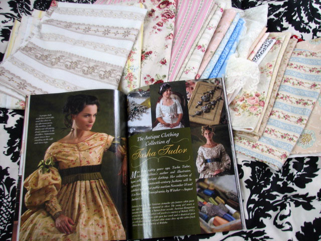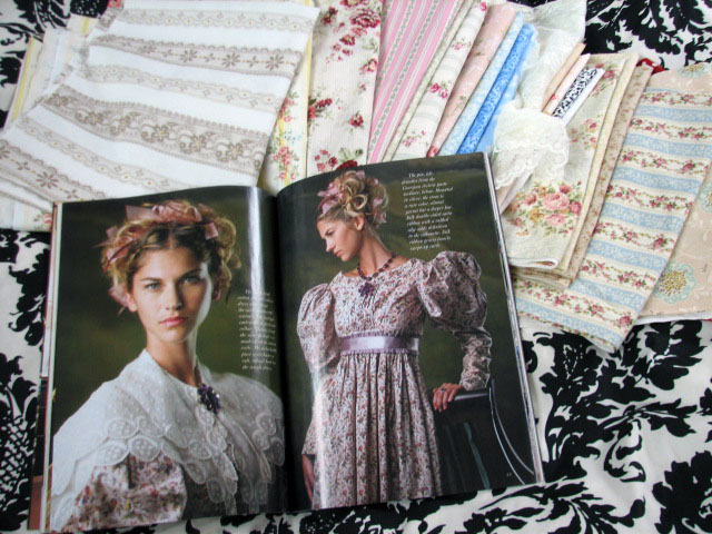 Wonderful December magazine issues and fabric shopping!!! Victoria Magazine is back! Look at Tasha Tudor’s gown collection, swoon, swoon swoon! And Mary Engelbreit is wonderful too!!! Look at that mantel vignette!!