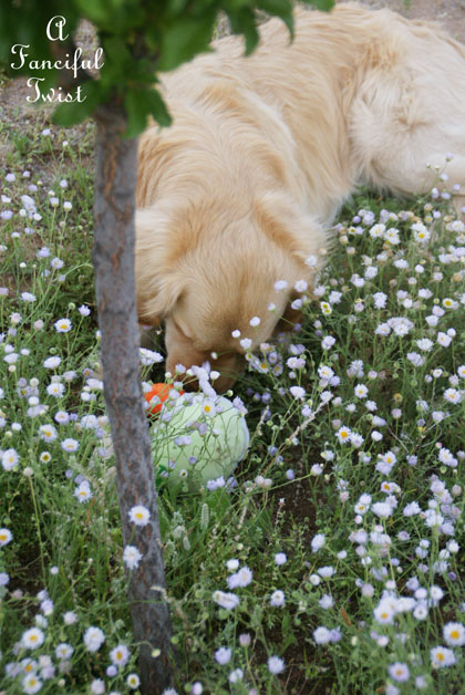 I think you should climb up the TREE with LovEE and paint the gourds right where they are 🙂
