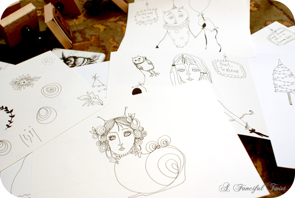 All of the drawings I am sharing, are ones that I have done in the past. Ones that you might recognize from a year or more ago.. Ones that have become a part of A Fanciful Twist… Some I have done for other people, and still others, that have fallen into little drawing oblivion….
