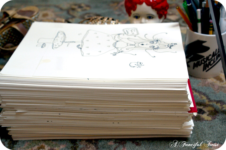 So, those are some of The Secret Lives of Drawings, and what goes on behind the A Fanciful Twist scenes… I have been sooo crazy busy lately. I have some projects I am working on, and all the holiday stuff to finish up, which, even though you think, it is Only JULY!! Is late in autumn retailing season time… I have been working 16 hour days in the studio and on the computer. And, I have to say it is all fun, so I can’t complain! But, you know, if you want to come over and help me… 😉