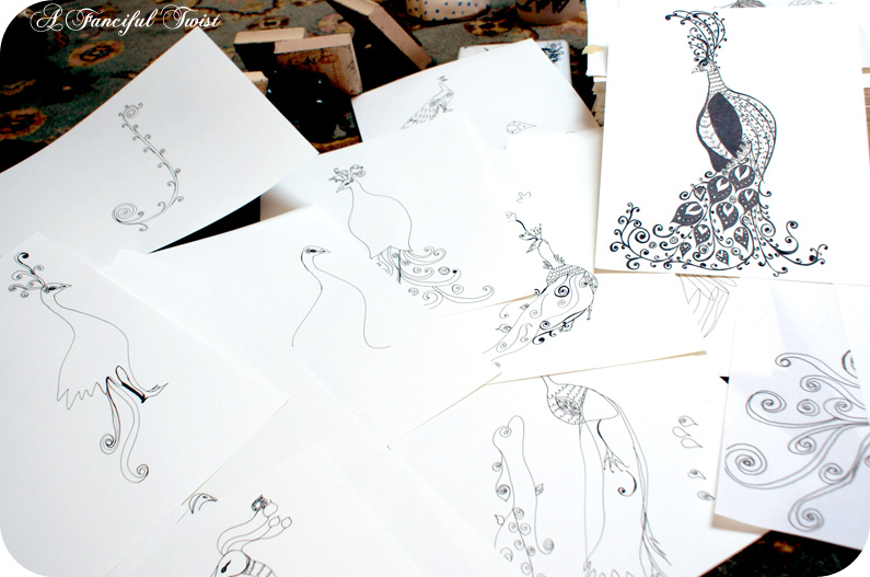 I have so many peacock drawings, and I have grown to really love them all… I think anyone who creates, can attest to the fact, that, they become so beloved, they are like my very own little children…