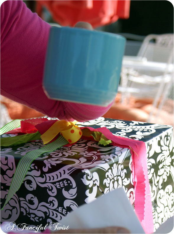 Welcome back miss fanciful! I can’t believe you neighbors squealed on us, having so much fun in your absence! Oh, we had such a lovely time what with the tiny little people and the glittery pretties!