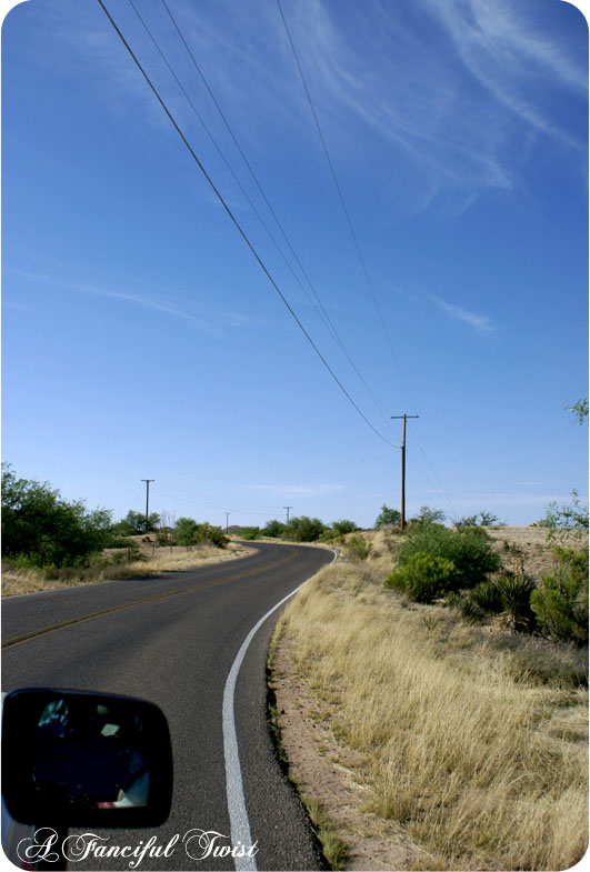 I began the voyage South, to my parents home, which is about 2 hours from my country abode and 1 hour from my city abode. Our part of Arizona is very strange. There are some very desert like areas, and then some very green areas, as you can see above… I took that from the car, hence the quality…