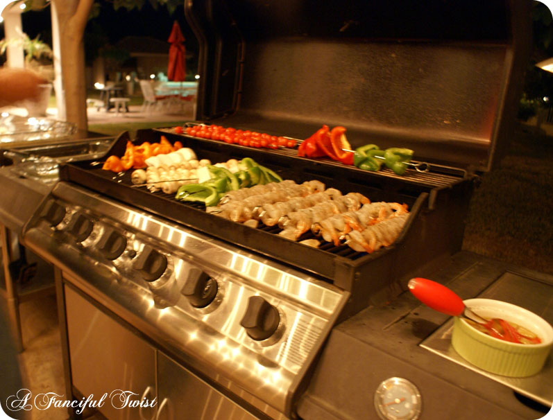 I arrived to platters full of shrimp and flakey bread with balsamic and olive oil… While Dad made skewers for our evening out on the patio. Oh the nights were divine. Warm with a gentle cool breeze…