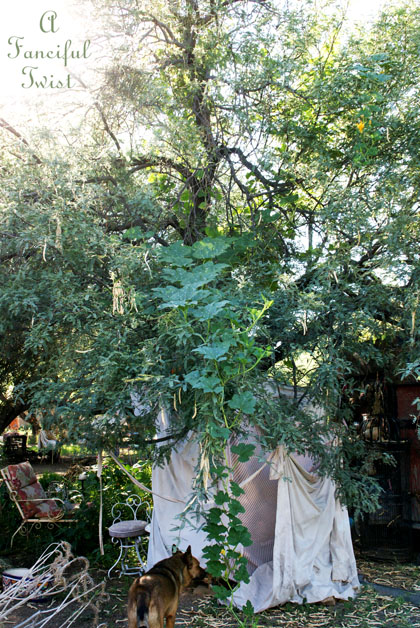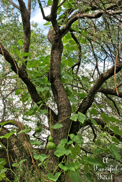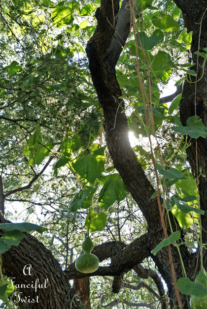 Okay, now you officially live in a dream garden…….pumpkins growing high up in the trees!!?? This is magic, Vanessa!! Pure magic!!! But, oh dear….if one were to suddenly fall from it’s vine!! eeeek! Do you ever hear them fall!? Or find pumpkin smoosh!? Thank You for this bit of wonder for my afternoon!!! I always know where to find such loveliness thanks to You!! : )
