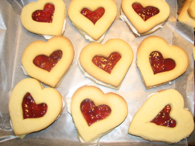 Then there is the assembly of it all. They are double layered with a butter and sugar filling and some rasberry preserves…