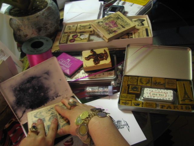 I love them but have yet to find the perfect place to put them up…What do you think? Oh, and as a note, the strangest 2 things happened. First, Mr. Lovee got home, and caught me stamping one of his V-gifts. He grabbed my camera and started taking pics. I said "stop, get away." Now, here is the funny thing…And, such a man thing…I do not even think he noticed, realized, or computed what I was doing. He just put my camera down and started talking to me…And, I was sitting there trying to put my hand over what I was doing….I do not understand the male mind. I wonder what he thought I was doing??? Upstairs, with stamps all around me and fingers covered in ink?…