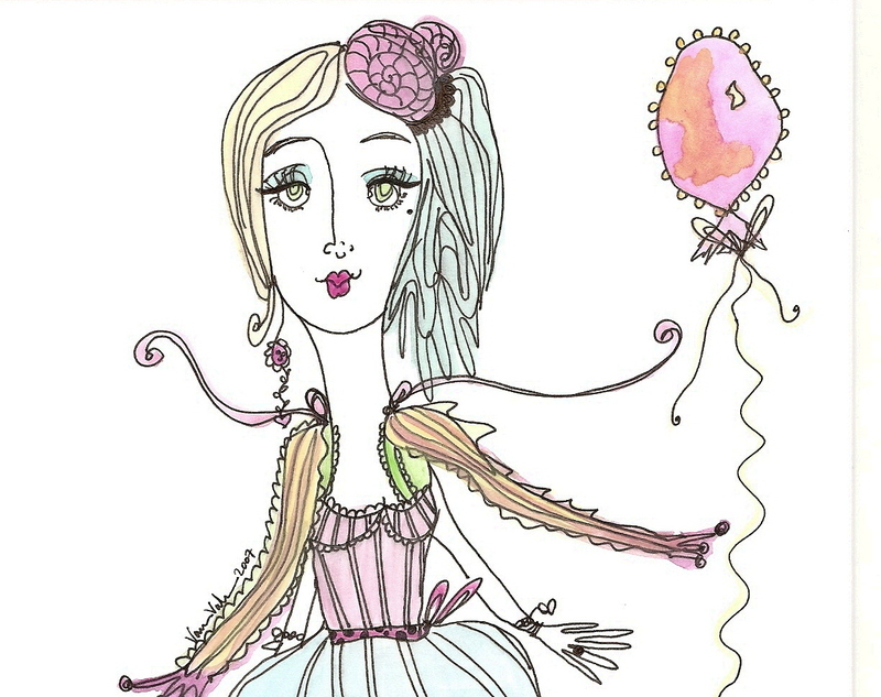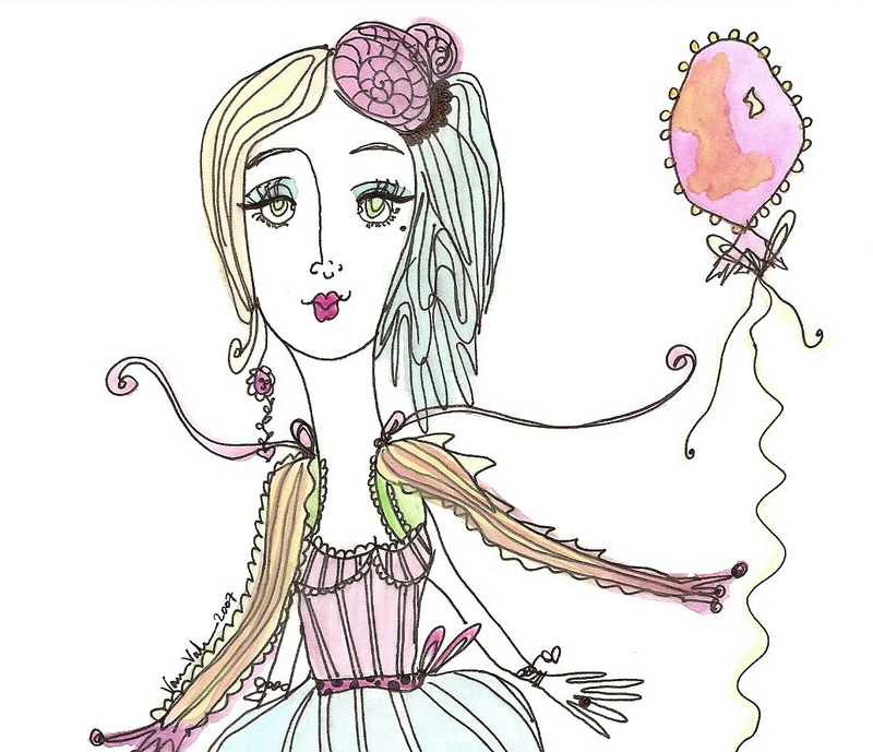 Miss Fanciful has had a weekend like no other…Endless hours of painting and drawing. Her inspirations have been a small few. Including your warm and wonderful encouragement and support…As well as the wonderful invention of the repeat button on the DVD player with movies such as Marie Antoinette & the always color inspiring Nanny McPhee.  Oh, the home decor, the cakes and shoes and dresses do inspire the fanciful soul!!!!! (hee hee, Versailles, home decor?? giggling, I wish that my Home decor was even a breath of such indulgence, I think you can't even call that home decor, would it be more like Palace Decor? YES!!!!!). Besides DVD, there has been endless NPR on 4 different radios, enjoying Saturday shows and now Sunday shows…