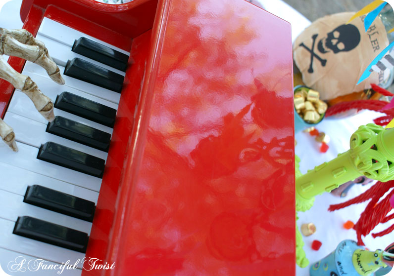 That is one fancy ship!I love the picture of the skeleton playing the piano:) And now I’m craving Rolos..hehe. Happy Soiree!