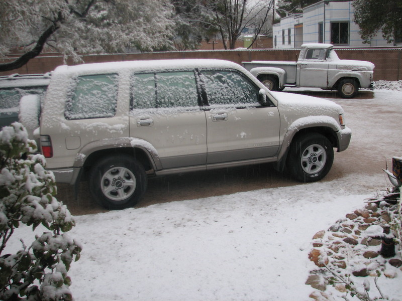 As for Today and snow.. What?? Snow, In Arizona, at the Studio actually. We are at a higher elevation here… (In my Tombstone accent) Well yes Miss, I reckon that, that there is the real thing…White snow, fallin' from that there sky….