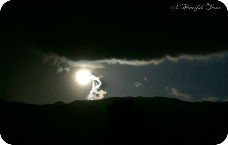 I have taken my camera with me night after night, to snap a few shots. The moon has been so big and so bright, it is illuminating everything with brightness. The clouds were so outrageous, I just couldn’t resist…