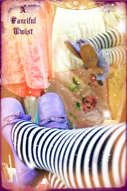 Magical shoes sent by my sister, from an era when you could visit the theater with an actual dime. The note attached read,"These reminded me of you…" And I had to chuckle, for imagine having such shoes remind someone of you? Eeeks, hahahaheeheeeeheeeheeeee 😉
