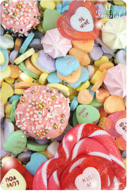 I am getting dizzy from the scent of that huge platter of sweetheart candies!!