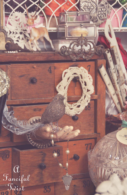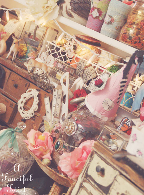 I luuuuv going to flea markets, antique and collectible stores. I will never get tired of finding that ‘thing’ I just need to bring home with me to add to all of my other ‘stuff’. I too have boxes of ‘things’ which I have been sorting into plastic drawer bins so I can see where my fabrics, and laces, and vintage paper is stored.