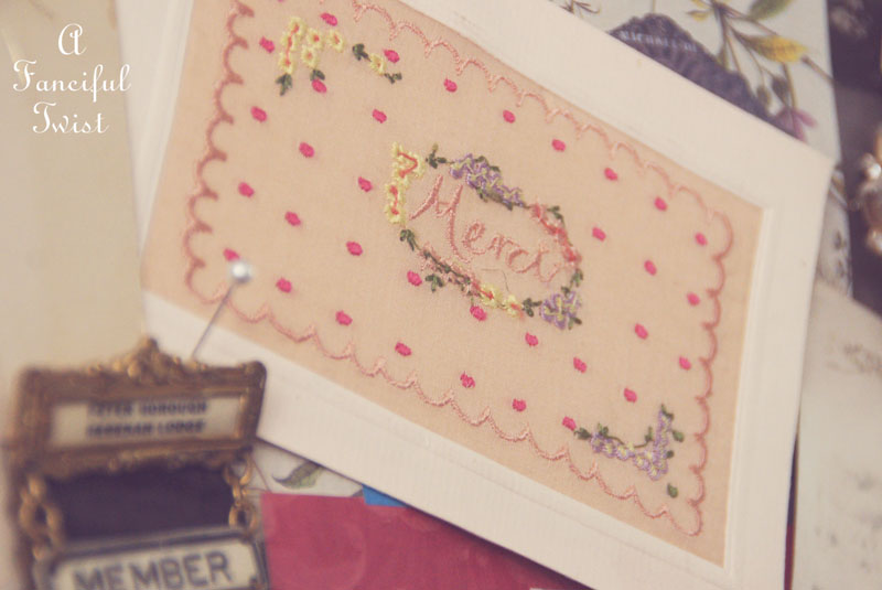 Even my beloved old little sewing kit is pinned on the wall.